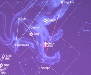 Sevgili Dostlar, Bu sabah gün doğmadan hemen önce doğuya dönüp baktığınızda müthiş güzellikte parlayan kocaman bir yıldız görmüş olabilirsiniz. O aslında tek bir yıldız değildi, bir araya gelen Mars ve Venüs’ün ortak ışıklarıydı. Cep telefonumla hemen fotoğraflarını çektim, pek profesyonel bir çekim olmasa da sizlerle paylaşıyorum… Elbette, çıplak gözle çok daha güzel görünüyorlar. (İlk fotoğraf sky chart, ikincisi sky view uygulamalarıyla çekildi.) Bu harika görüntü birkaç sabah daha gözlerimize ziyafet çekecek.