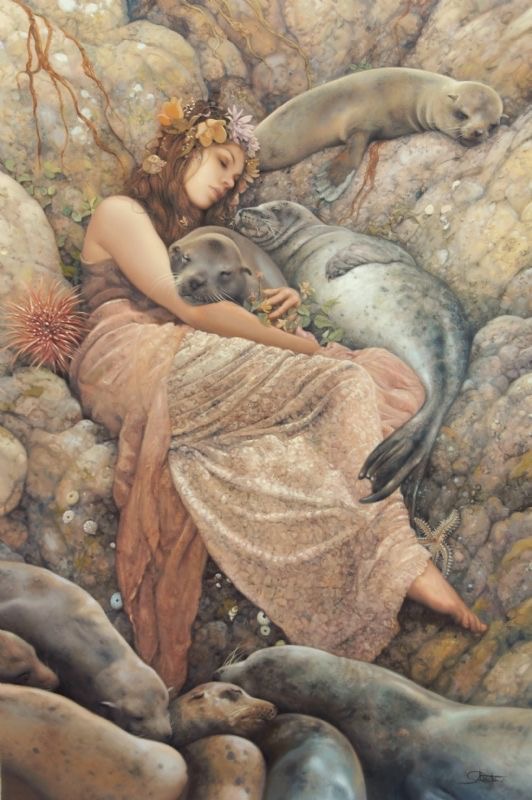 “Bir kadın denizden yükselir, onu bir fok kucaklamaktadır”
