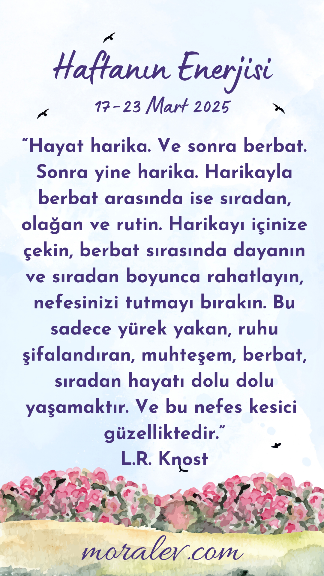 Haftanın enerjisi ve olumlamasını bir dakikada dinlemek isterseniz, yukarıdaki ses dosyasına tıklayın.