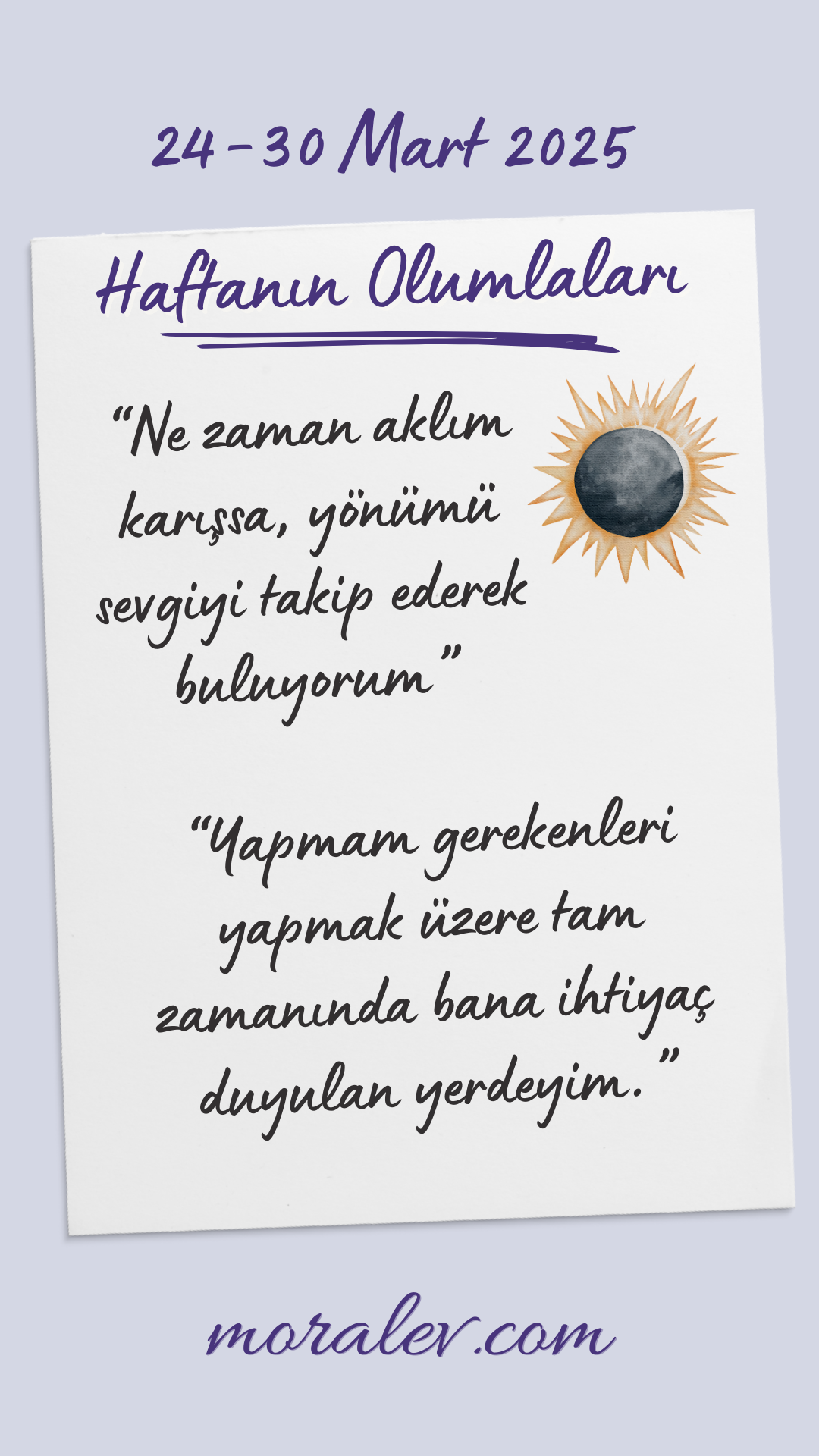 Haftanın olumlamalarını paylaşın, pinleyin, saklayın, yazın, arka plan resmi yapın, fotoğrafını çekin, basın, duvara asın, nasıl isterseniz öyle yapın ama kullanın :)