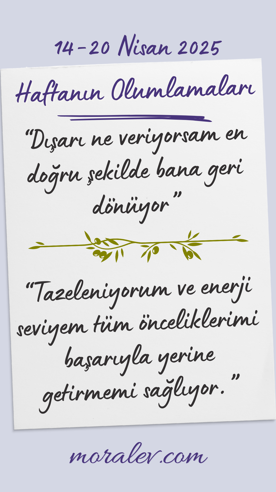Haftanın olumlamalarını paylaşın, pinleyin, saklayın, yazın, arka plan resmi yapın, fotoğrafını çekin, basın, duvara asın, nasıl isterseniz öyle yapın ama kullanın :)