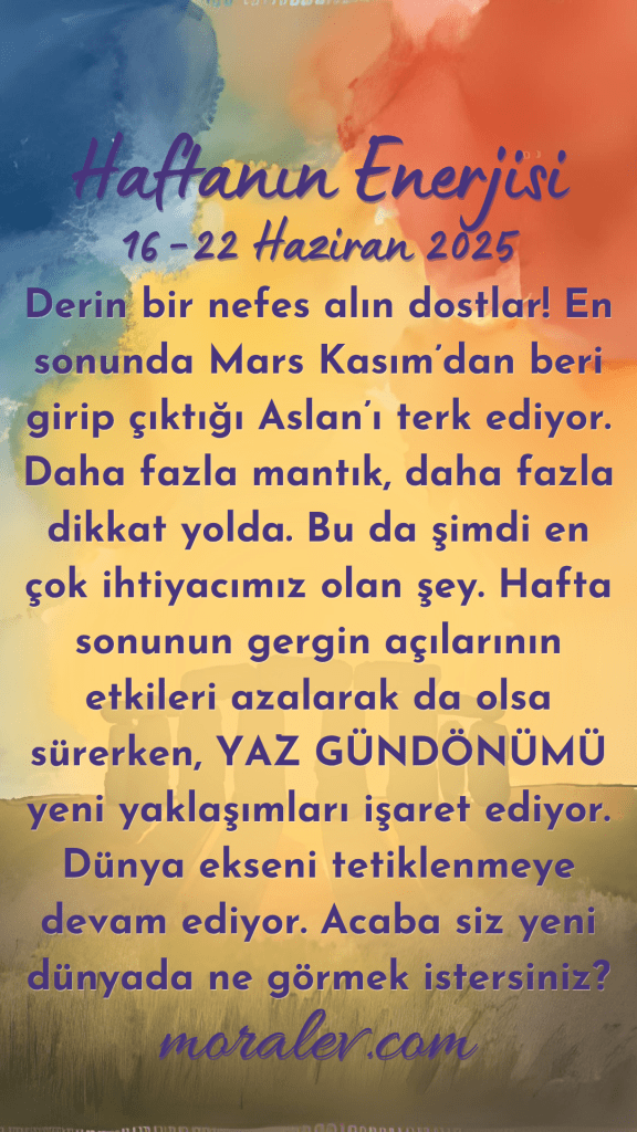 Haftanın enerjisi ve olumlamasını bir dakikada dinlemek isterseniz, yukarıdaki ses dosyasına tıklayın.