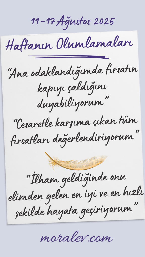 Haftanın Olumlamalarını paylaşın, pinleyin, saklayın, yazın, arka plan resmi yapın, fotoğrafını çekin, basın, duvara asın, nasıl isterseniz öyle yapın ama kullanın. :)