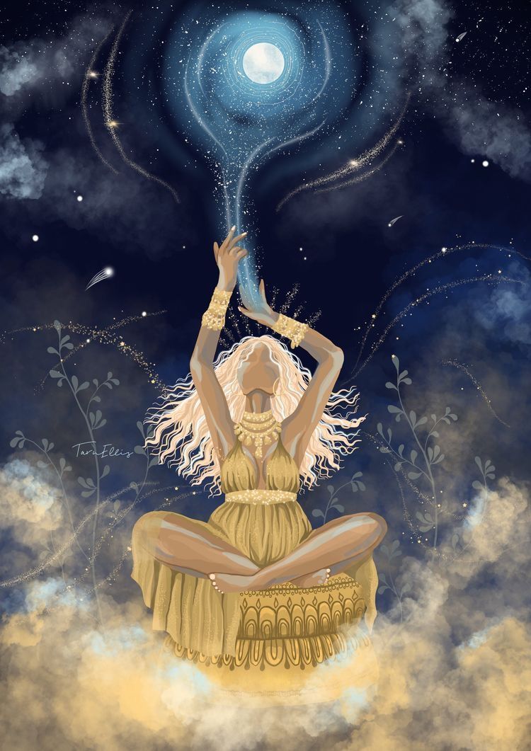 Görseller: Dalgalar ve dolunay – Canva, İlham akışı – Tarn Ellis, Neden – Colette Baron-Reid’in “Wisdom of the Oracle” destesi, Dalgalarda uyuyan kız – Maalesef sanatçıyı bulamadım.