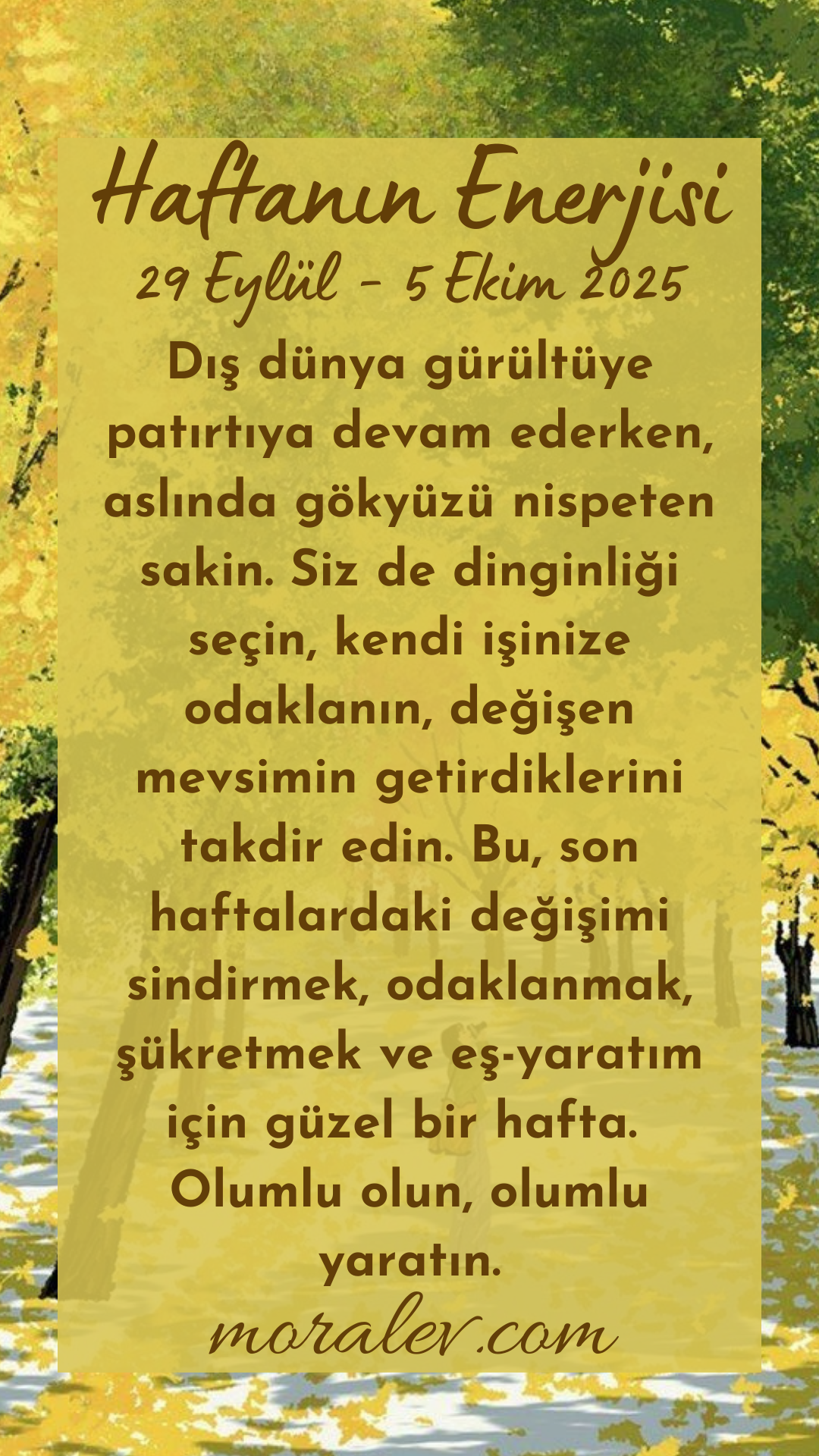 Haftanın enerjisi ve olumlamasını bir dakikada dinlemek isterseniz, yukarıdaki ses dosyasına tıklayın.