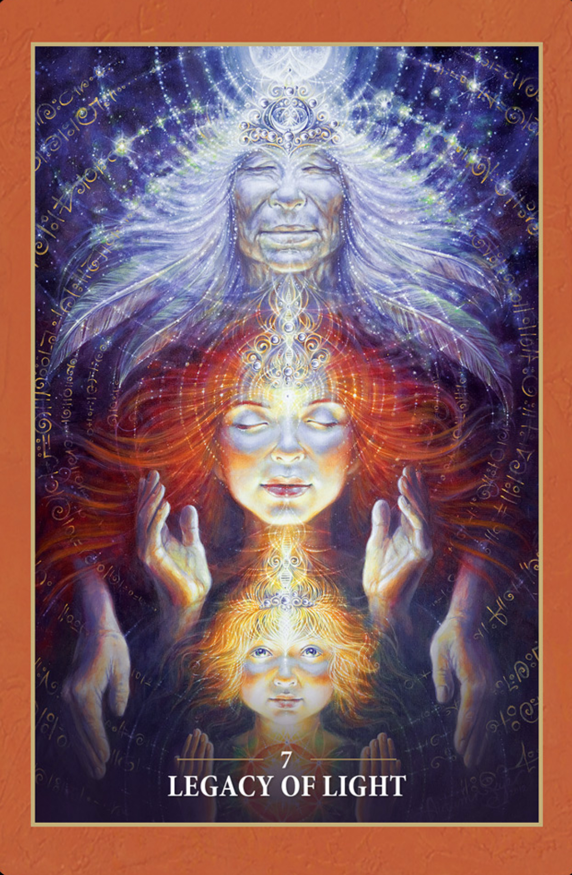 “Kutsal doğum hakkınız olan ve miras aldığınız ışığı onurlandırmanız isteniyor. Sadece kan bağıyla değil, ruhen de bağlı olduğunuz atalarınızdan beslenip destek alın. Geçmişinizden gelen bu ışığın mirasından ne kadar beslenirseniz, gelecekte ışığınızla desteklenecek olanlar için o kadar çok mirasın taşıyıcısı olursunuz. Bu, büyük evrensel ışık kaynağından insanlığa verilen kutsal bir armağandır. Her neslin kalbinden bir sonrakine aktarılan bilgelik, yaratıcılık, radikal cesaret, sevgi ve saygının ışığıdır. Işık, özünüzü dünyaya yansıtmak ve parlatmak için sahip olduğunuz ruhani mirastır… güneş gibi, ışık saçan ve doğanızdan utanmayan biri olmak sizin sorumluluğunuzdur.”