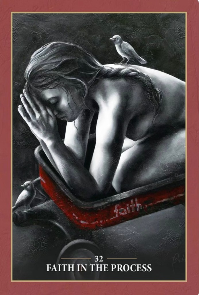 Eğer yıllarınızı kişisel gelişim dünyasında geçirdiyseniz bu sözleri fazlasıyla duymuşsunuzdur. “Bu bir süreç”, “sürece güven”, “süreç devam ediyor” ve benzerleri… Mor Alev değil, bir insan olarak bunları duymanın artık içimi sıktığını söylemeliyim Bilge Baykuşlar! Dolayısıyla bu kartı çekince önce bozuldum. Fakat bozulsam da, sabırsızlansam da, “öf artık şu dünya aydınlık günlere çıksın, ne bekliyoruz” desem de gerçeği inkar edemeyiz. Bu gerçekten de bir süreç ve bu tutulma sürecin önemli bir parçası. Hepimiz bu upuzuuuuun yeniden doğuştan geçiyoruz. Bir değil, onlarca defa yeniden doğduk, doğmaya devam ediyoruz. Bu kart bize bu “süreçte” yol gösteriyor. Diyor ki;