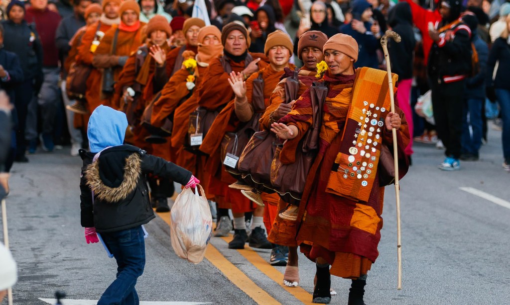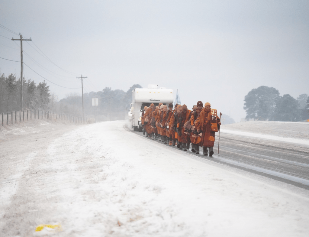 Yaşamakta olduğumuz Satürn-Neptün kavuşumunun ruhunu temsil eden uzun soluklu bir olay daha vardı. 26 Ekim’de bir grup Budist keşiş Teksas’taki manastırlarından çıkıp Washington’a kadar yaklaşık 3700 km sürecek bir Barış Yürüyüşüne çıktılar. Ben Aralık civarı haberdar oldum. Sessizce başladıkları yürüyüş haftalar geçtikçe onlara eşlik edenler, sosyal medyada takip edenlerin çığ gibi büyümesiyle dikkat çekmeye başladı. 19 adam Hindistan’da evlat edindikleri köpekleri Aloka ile yürürken bir keşişin bacağını yitirmesine sebep olan bir kaza bile yaşadılar, ABD’deki son yılların en sert kışında yürüdüler (Oğlak kümelenme), Aloka hastalandı ve iyileşti (Chiron-Jüpiter). Geçtikleri yollar boyunca sıralanan insanların çoğu, sosyal medyada aylarca rahipleri takip etmiş, karmaşık dünyanın gürültüsünü engellemek ve huzur bulmak gibi basit görünen mesajlarına kapılmışlardı (Kova kümelenme). Her ırktan, renkten, inançtan, farklı dinlerden insanlar ve hatta onların güvenliğini sağlayan polisler bile barış ve farkındalık çağrısını hissediyorlardı (Balık kümelenme). Fotoğraf ve videolarda bu sakin gruba bakınca nedenini bilmeden ağlayan kocaman insanlar gördüm. Onlarsa bir adımın önüne diğerini koyarak ilerlediler.