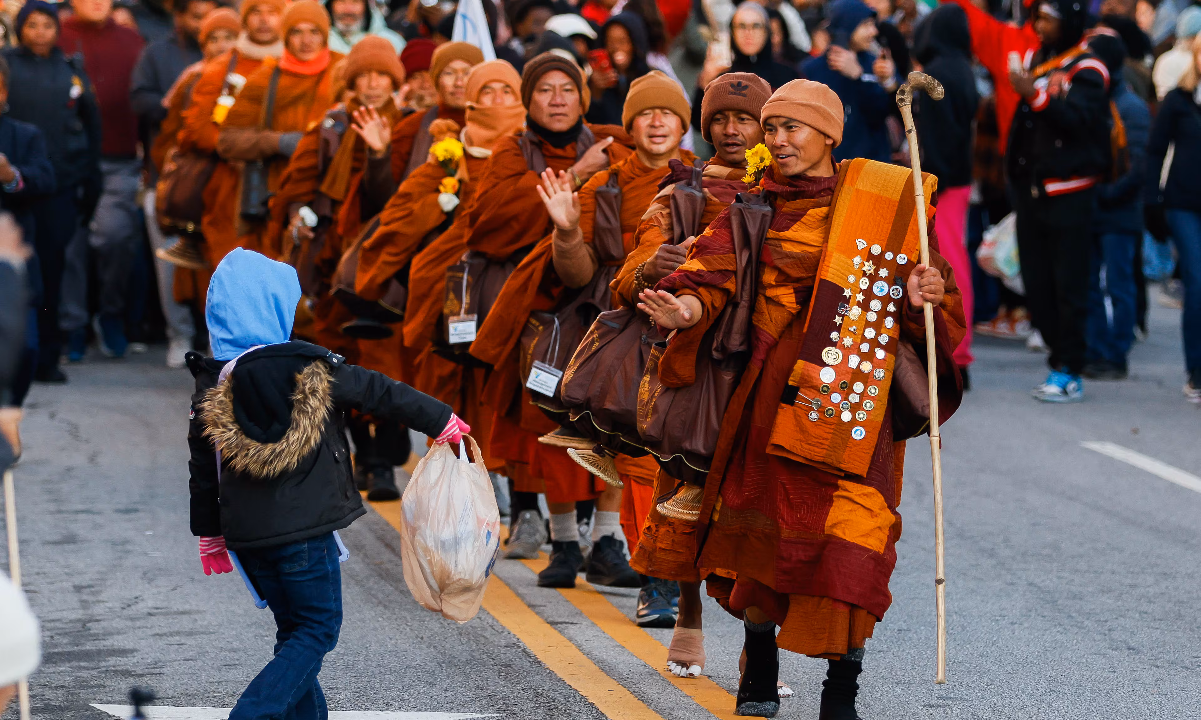 Yaşamakta olduğumuz Satürn-Neptün kavuşumunun ruhunu temsil eden uzun soluklu bir olay daha vardı. 26 Ekim’de bir grup Budist keşiş Teksas’taki manastırlarından çıkıp Washington’a kadar yaklaşık 3700 km sürecek bir Barış Yürüyüşüne çıktılar. Ben Aralık civarı haberdar oldum. Sessizce başladıkları yürüyüş haftalar geçtikçe onlara eşlik edenler, sosyal medyada takip edenlerin çığ gibi büyümesiyle dikkat çekmeye başladı. 19 adam Hindistan’da evlat edindikleri köpekleri Aloka ile yürürken bir keşişin bacağını yitirmesine sebep olan bir kaza bile yaşadılar, ABD’deki son yılların en sert kışında yürüdüler (Oğlak kümelenme), Aloka hastalandı ve iyileşti (Chiron-Jüpiter). Geçtikleri yollar boyunca sıralanan insanların çoğu, sosyal medyada aylarca rahipleri takip etmiş, karmaşık dünyanın gürültüsünü engellemek ve huzur bulmak gibi basit görünen mesajlarına kapılmışlardı (Kova kümelenme). Her ırktan, renkten, inançtan, farklı dinlerden insanlar ve hatta onların güvenliğini sağlayan polisler bile barış ve farkındalık çağrısını hissediyorlardı (Balık kümelenme). Fotoğraf ve videolarda bu sakin gruba bakınca nedenini bilmeden ağlayan kocaman insanlar gördüm. Onlarsa bir adımın önüne diğerini koyarak ilerlediler.