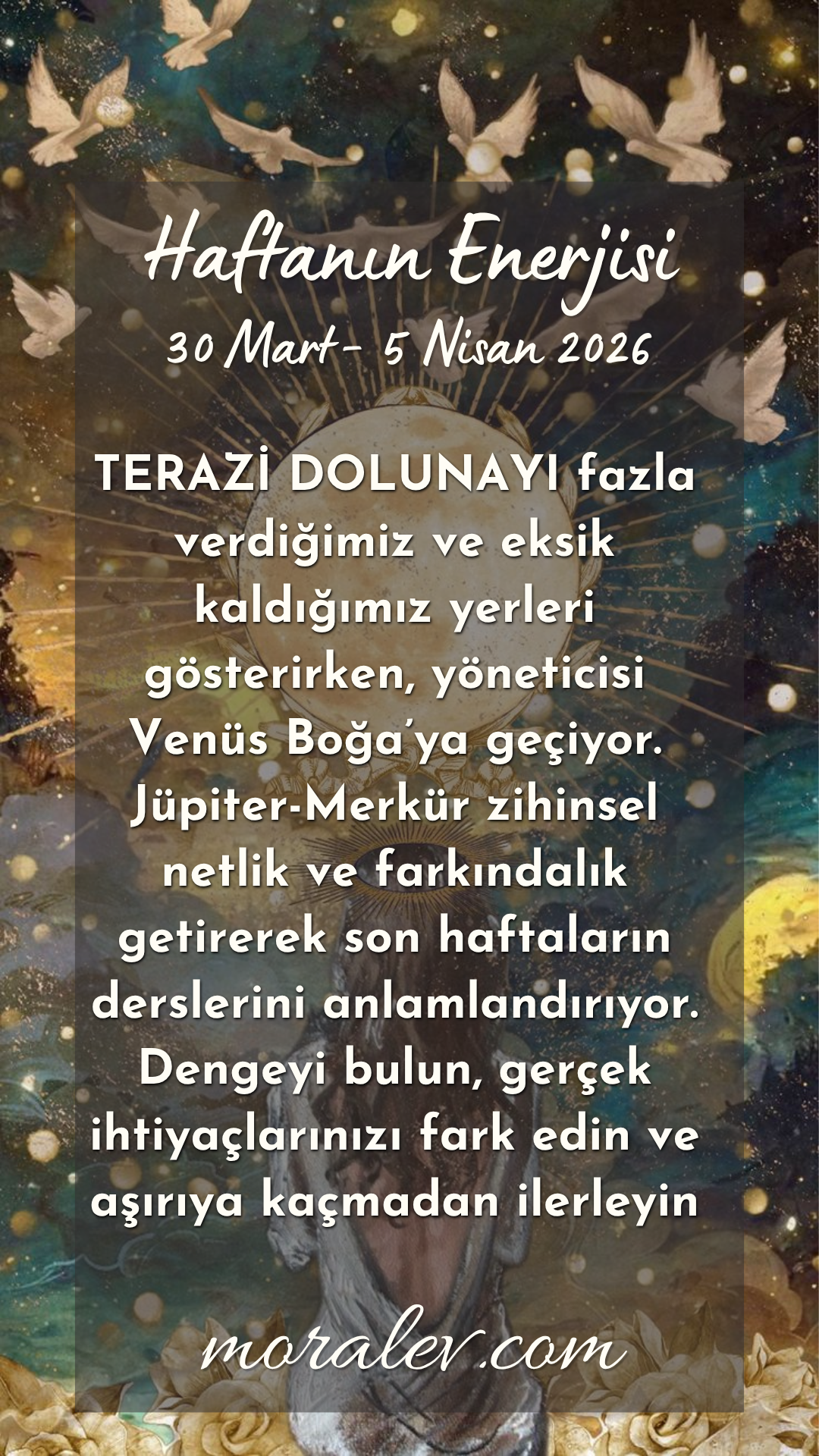 “Hafta, 30 Mart Pazartesi günü Venüs’ün kılıcını bırakıp savaşçı modundan çıkarak rahat ve doğal evi Boğa burcuna geçmesiyle başlıyor. Sosyal modumuz, birbirimizle iletişim kurma şeklimiz, maddi rahatlığa ve elimizin altında, istediğimiz zaman ulaşabileceğimiz şeylere daha fazla odaklanacak.