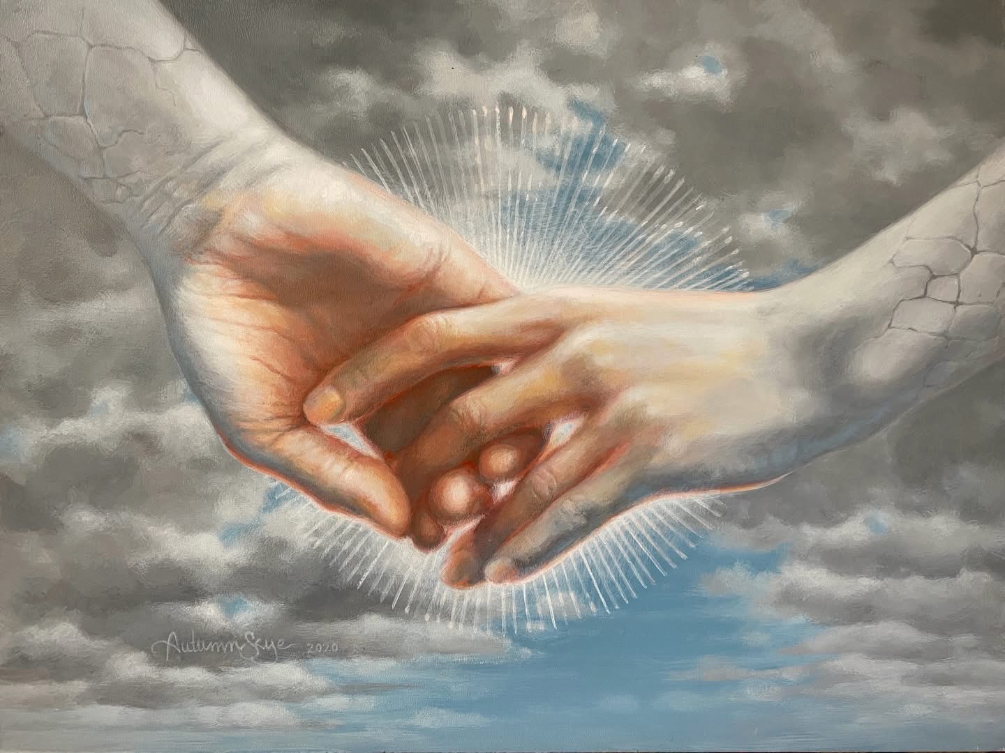 Bu paylaşımın kapağını da yaratmış olan sanatçı Autumn Skye bundan iki hafta önce yukarıdaki “Dokunmanın can veren gücü” eserini paylaşırken şu sözleri yazmış: