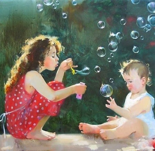 “Sabun köpükleri üfüren çocuklar”
