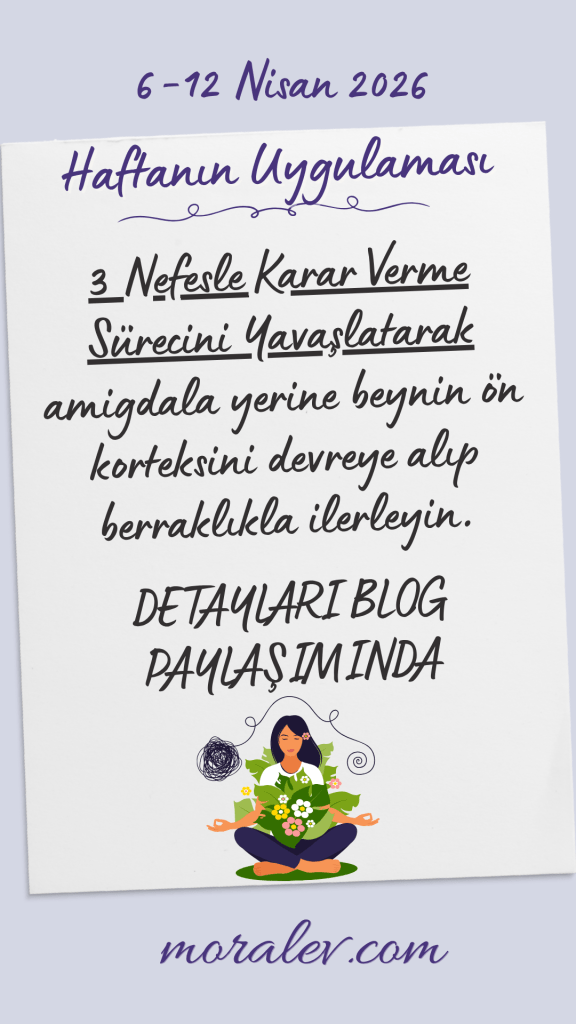 Bu hafta önemli bir karar veya hareketten ya da ne zaman o aciliyet hissini, o panik benzeri baskılı duyguyu hissederseniz, önce “3 Nefeslik Duraklama” uygulayın: